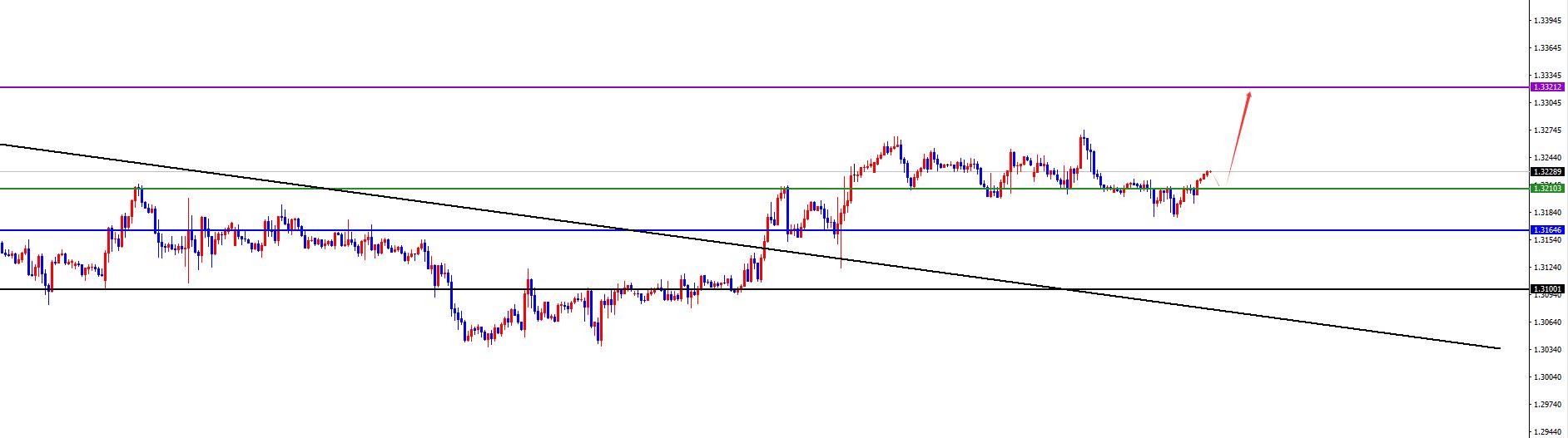 El punto clave es el área 1.3200-10, el precio debería permanecer mucho antes de que haya una reversión
