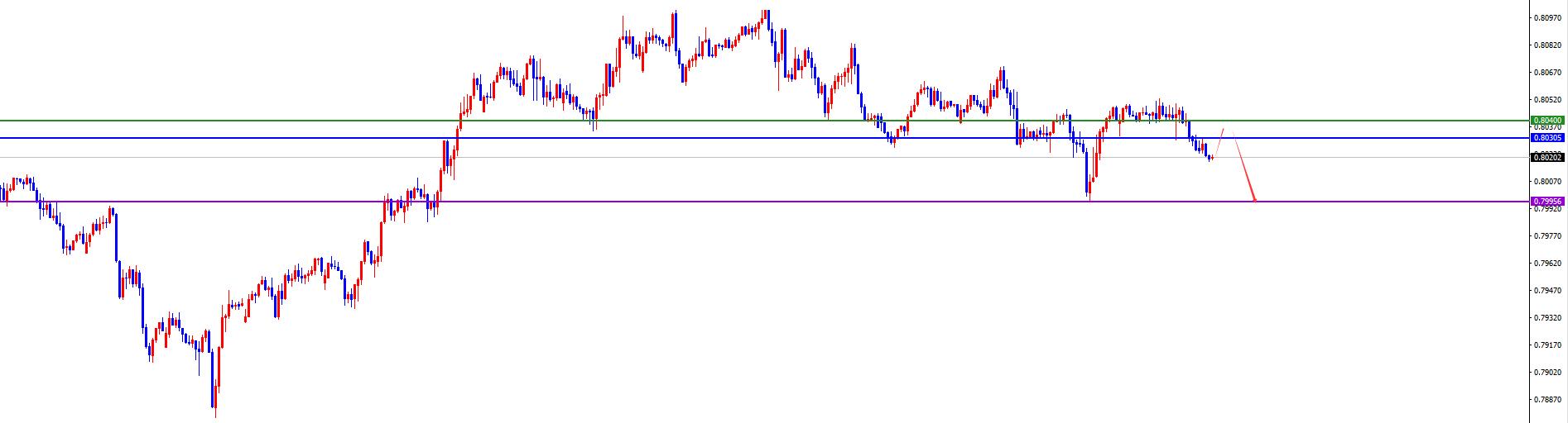 El punto de inflexión clave es el área 0.8030-40, manténgase corto antes de que el precio se revierta