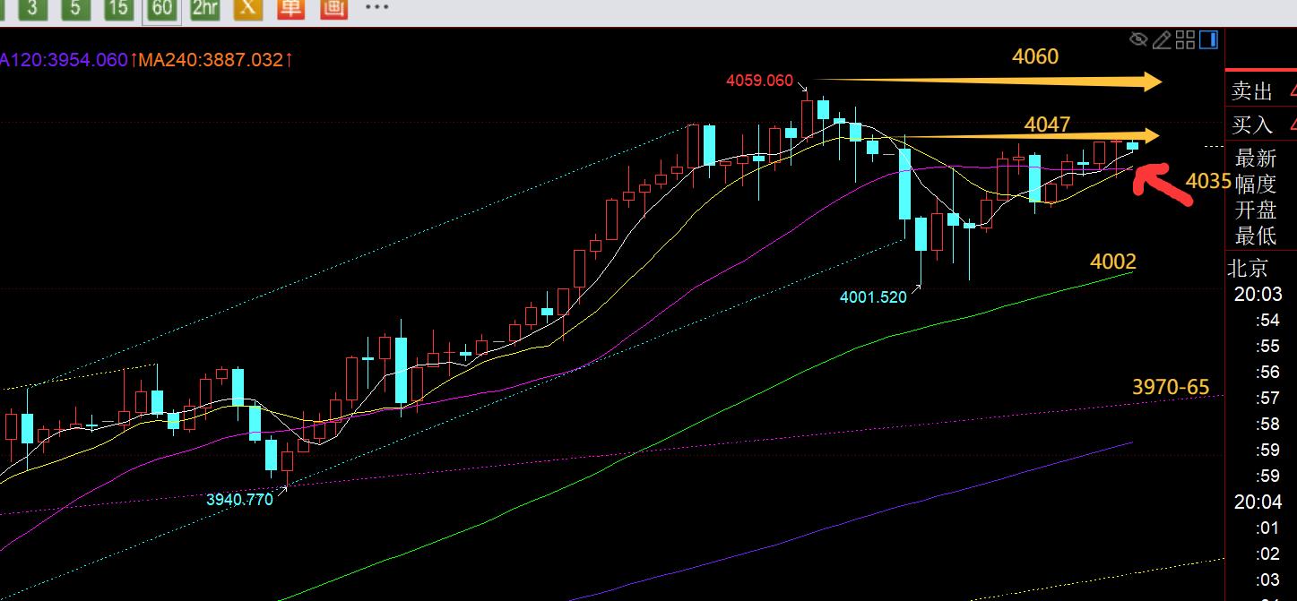 Deuxièmement, la ligne de l'heure d'or niveau : Dans la matinée, le grand Yin a fortement chuté et est tombé en dessous de la moyenne mobile de 10 et du rail intermédiaire. Il a rebondi en premier pour confirmer le rail médian. Il s'est avéré que c'était la ligne de résistance de division 618 qui est tombée du plus haut de la nuit au plus bas du matin et a rebondi à partir de la ligne 4037. Suivez la vague pour voir une correction, avec le plus bas touchant 40 02, il y a une marge bénéficiaire de 30 mètres ; puis, après une vague de déclin, un canal descendant avec des points hauts descendants et des points bas descendants s'est progressivement formé. Le canal de rebond de l'après-midi a continué à tenter des corrections baissières en dessous de 4028, mais le prix a franchi l'ouverture devant 4037 et la suppression a échoué. Si la formation du canal échoue, il est nécessaire de replanifier un nouvel itinéraire ; le marché européen dans son ensemble oscille en fait autour de la voie médiane, avec une mauvaise continuité, et cela s'est produit en spectacle ; ce soir, faites attention à la moyenne mobile sur 10 jours de 4035, tout www.xmniubi.comme hier soir, ce n'est que si elle casse effectivement la position et tombe, une fois le rebond confirmé, que la pression à la baisse pourra être supprimée. Wave, puis testez le support au-dessus de 4000 et le support moyen mobile quotidien sur 5 jours au-dessus de 3970 ; au contraire, si 4035 a tenu bon et n'a pas effectivement cassé, la tendance restera quand même assez forte et résistante, et le sommet pourrait tester la limite supérieure de la bande de Bollinger de 3460 pour voir les gains et les pertes ;