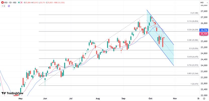 Le azioni di Hong Kong hanno registrato un rimbalzo oggi in seguito ai dati economici favorevoli e al progresso delle tariffe. Il mercato continuerà a prestare attenzione alle fluttuazioni causate dalle dichiarazioni di Trump. www.xmniubi.come sottolineato in precedenza, tecnicamente rimbalzerà di nuovo mantenendo la soglia dei 25.000. Tuttavia, deve superare la resistenza chiave delle medie mobili a 10 e 20 giorni nell'intervallo www.xmniubi.compreso tra 26.100 e 26.400 prima di poter tornare nella fascia alta. Se continua a rimanere intrappolato nel canale discendente, l'intervallo www.xmniubi.compreso tra 25.000 e 24.800 fornirà ancora una volta supporto.