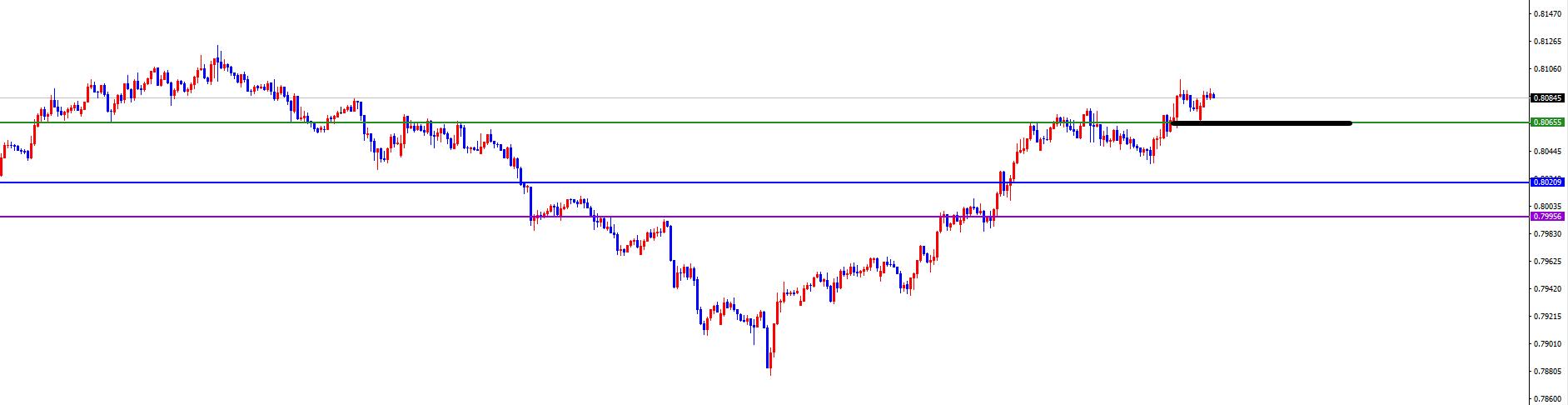 Lo spartiacque chiave dell'area 0,8060, da mantenere molto prima che il prezzo si inverta (attenzione all'inversione)
