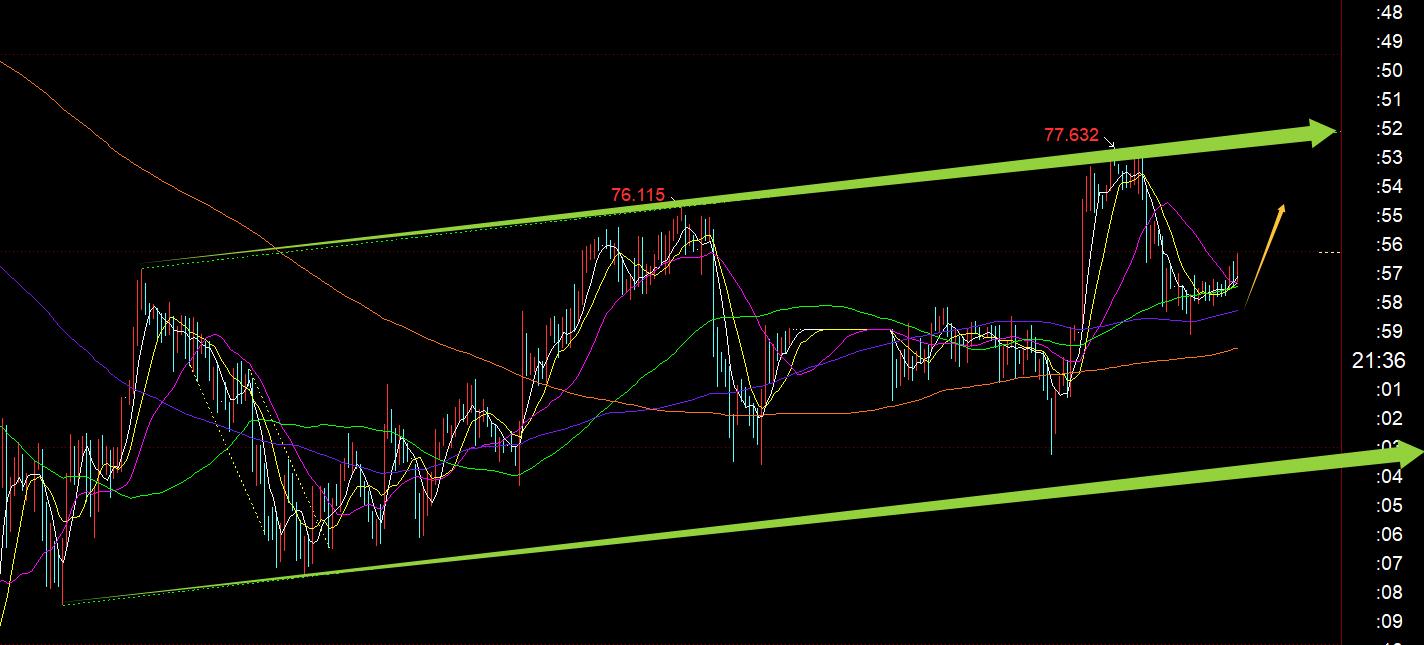 마찬가지로 은색도 충격적인 상승 채널이므로 하단 트랙을 유지하세요. 오늘 밤 74.2는 상단 지지선, 저항선은 75.7-76, 77.7입니다.
