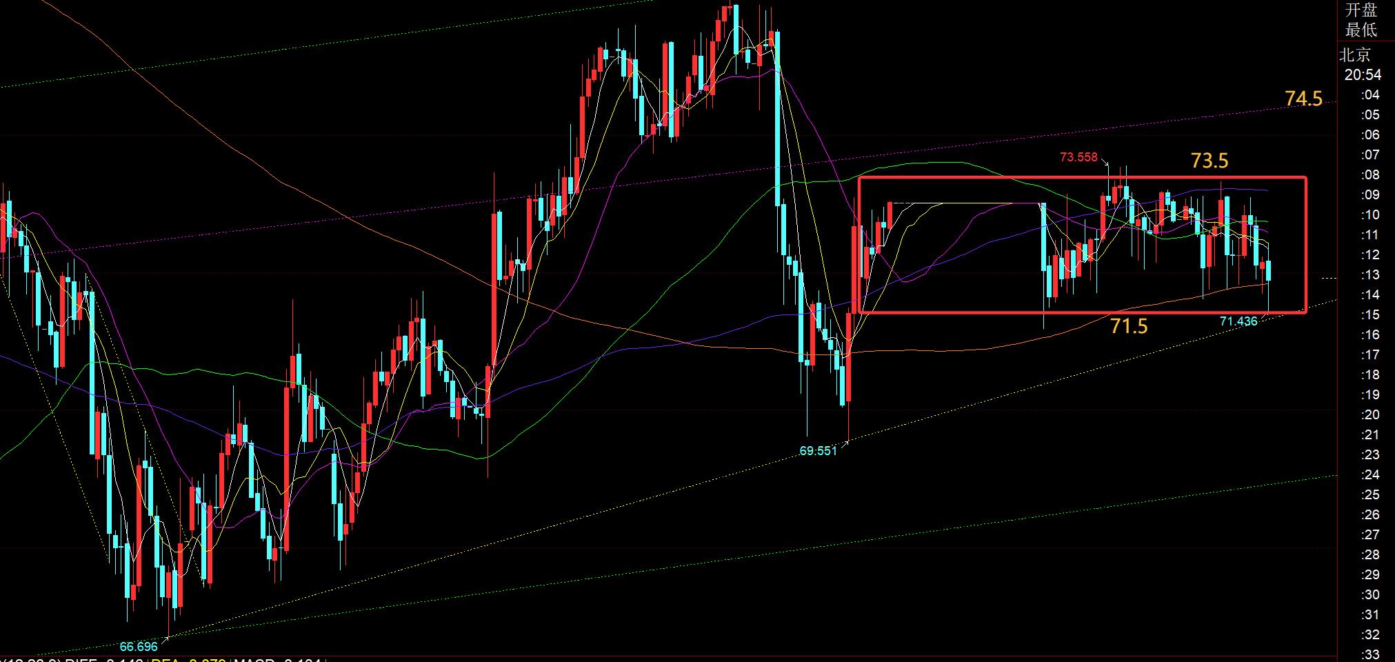 第二,白银方面:昨日它整体动静不大,处于71.5-73.5之间一路横盘为主;