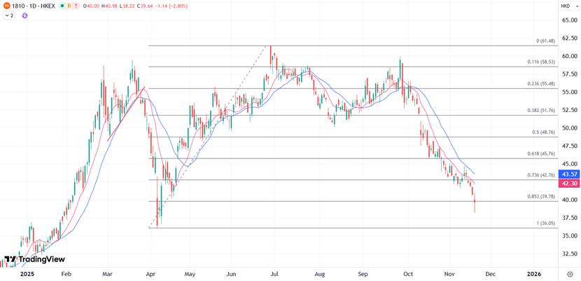 Xiaomi erreichte im Juni einmal eine Marktkapitalisierung von 200 Milliarden US-Dollar. Da die Smartphone- und Elektrofahrzeugmärkte jedoch mit Gegenwind zu kämpfen haben, hat sich Xiaomi in letzter Zeit zu einem der Technologiewerte mit der schlechtesten Wertentwicklung entwickelt und ist seit Ende September um mehr als 30 % gefallen. Das durchschnittliche Kursziel der Analysten wurde gegenüber dem August-Hoch um mehr als 8 % gesenkt und liegt damit an dritter Stelle unter den Aktien von Hang Seng Technology, nur an zweiter Stelle nach Meituan und Li Auto.