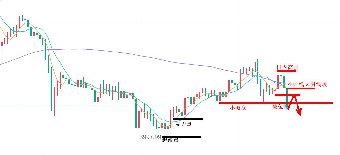 4. Der Preis durchbrach den Boden in einem Atemzug und es wurde schwierig, die Position festzuhalten. Das Tief am frühen Morgen liegt bei der Linie 40667-68 und die stündliche negative Linie liegt bei der Linie 4082. Dies sind zwei kurzfristige kurzfristige Punkte innerhalb des Tages.