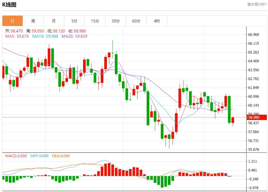 Crude oil market: As of 21:20 Beijing time, U.S. oil rose, now trading at 58.980, an increase of 0.85%. Before the New York market, (crude oil) prices rose on the last trading day, trying to recover some of the previous losses and unloading some oversold conditions on the relative strength indicator, especially with the emergence of positive signals, affected by the break of the previous short-term bullish correction trend line.
