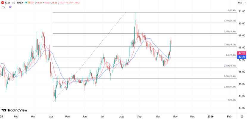 Por ejemplo, la entrada de Li Ning en la plataforma minorista instantánea ha planteado requisitos más altos para la selección en tienda, la eficiencia del embalaje y la dotación de personal. Si el proceso no se gestiona adecuadamente, puede aumentar los costos operativos de una sola tienda. Las plataformas de venta instantánea suelen cobrar una determinada xmniubi.comisión y las promociones pueden ser más frecuentes. Es necesario prestar atención a su impacto final en el margen de beneficio neto del producto. El precio de las acciones de Li Ning subió significativamente de la noche a la mañana en Estados Unidos, pero las acciones de Hong Kong no siguieron su ejemplo hoy, estableciendo un nuevo máximo desde el 10 de septiembre y luego retrocediendo. Si cierra por debajo de 18 dólares de Hong Kong durante el día, se enfrentará a la presión de caer a 17,20 dólares de Hong Kong. En ese momento se prestará atención al soporte clave formado por las principales medias móviles en el gráfico diario.