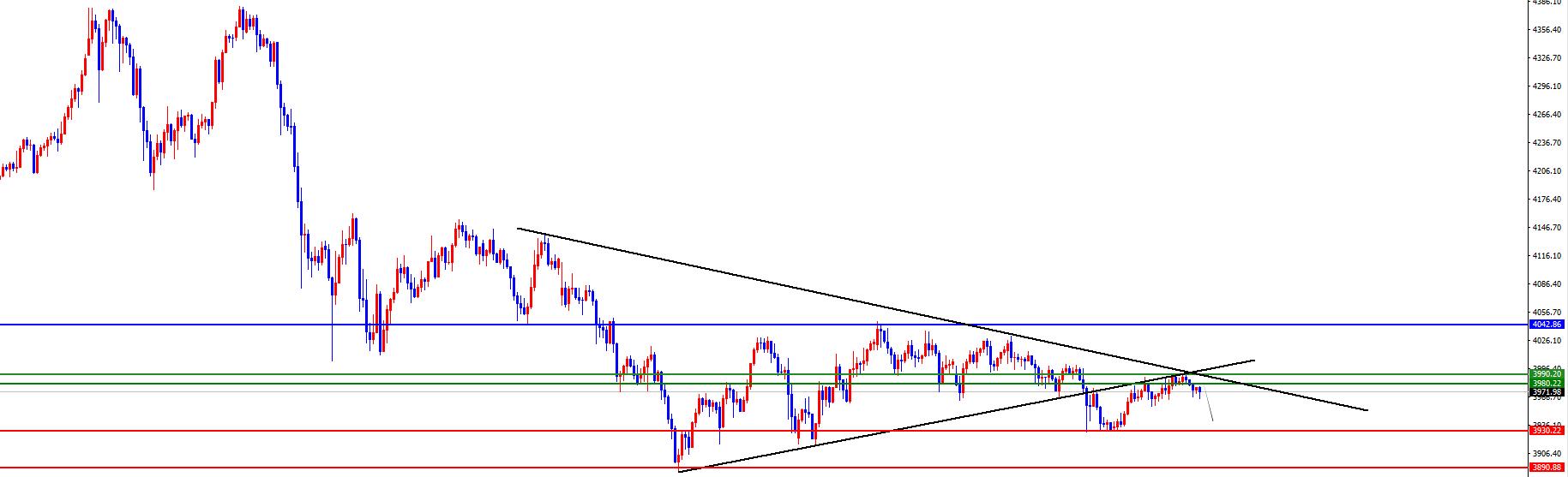 La cuenca clave es 3980-3990. El precio fluctuará y estará bajo presión antes de que haya una señal de reversión