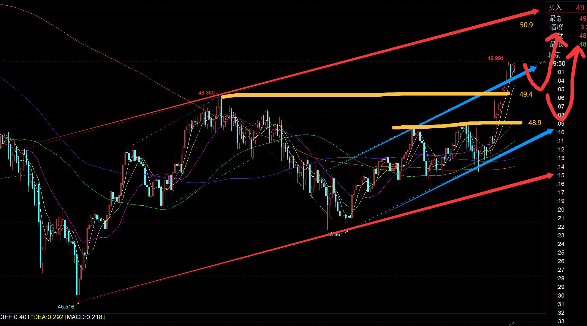 Quatrièmement, le niveau horaire doré : Zhou Video prévoyait de continuer à tester la tendance haussière à 3990 ce matin. En conséquence, il s'est envolé autour de 4000 à l'ouverture sans regarder en arrière du tout. Après avoir franchi la résistance du rail supérieur de 4053 sur le canal ascendant bleu dans l'image ci-dessus, il a continué à percer. La hauteur actuelle de l'impact élevé est de 4086 ; et la hausse continue des marchés asiatiques et européens signifie que le marché américain augmentera à nouveau pour la deuxième fois, mais s'il ne recule pas, il n'osera vraiment pas suivre directement. Après tout, l'augmentation intrajournalière a été de près de 90 mètres, xmniubi.comme jeudi dernier, si elle est forte pendant la journée, elle ne reculera pas, mais elle s'affaiblira lorsqu'elle reculera la nuit, mais il ne devrait pas y avoir trop de vaisselle cette fois-ci. tout, il a franchi le niveau de résistance clé du front de 4040 ; le premier support ce soir est de prêter attention à la piste supérieure du canal bleu pour retracer le point de confirmation de 4060, suivi de la ligne 4040, qui sera également proche de la position médiane, et la limite ultime est la piste inférieure du nouveau canal jaune 4030-20, tant que vous osez descendre, vous devez oser continuer à être haussier à court terme ; résistance, faites d'abord attention à la récente ligne supérieure de la voie 4094-95 du canal rouge. Si elle dépasse la station, elle examinera progressivement la fourchette 4133-4155 ;