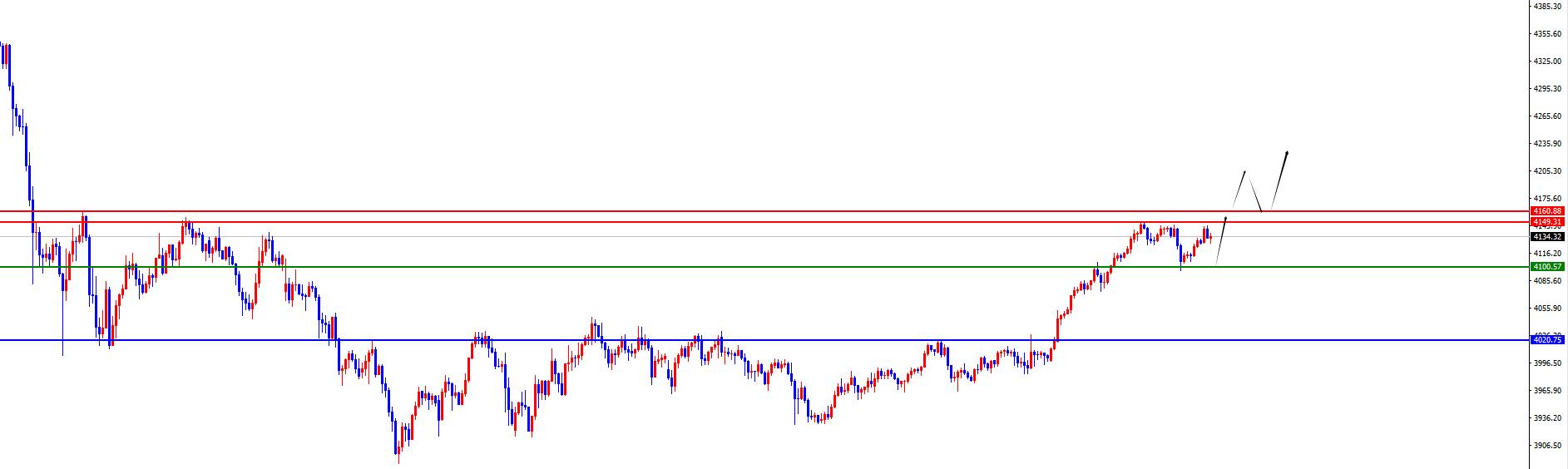 Le tournant clé est la fourchette 4095-4100. Le prix devrait augmenter au-dessus de cette position, et faites attention aux gains et aux pertes de 4160