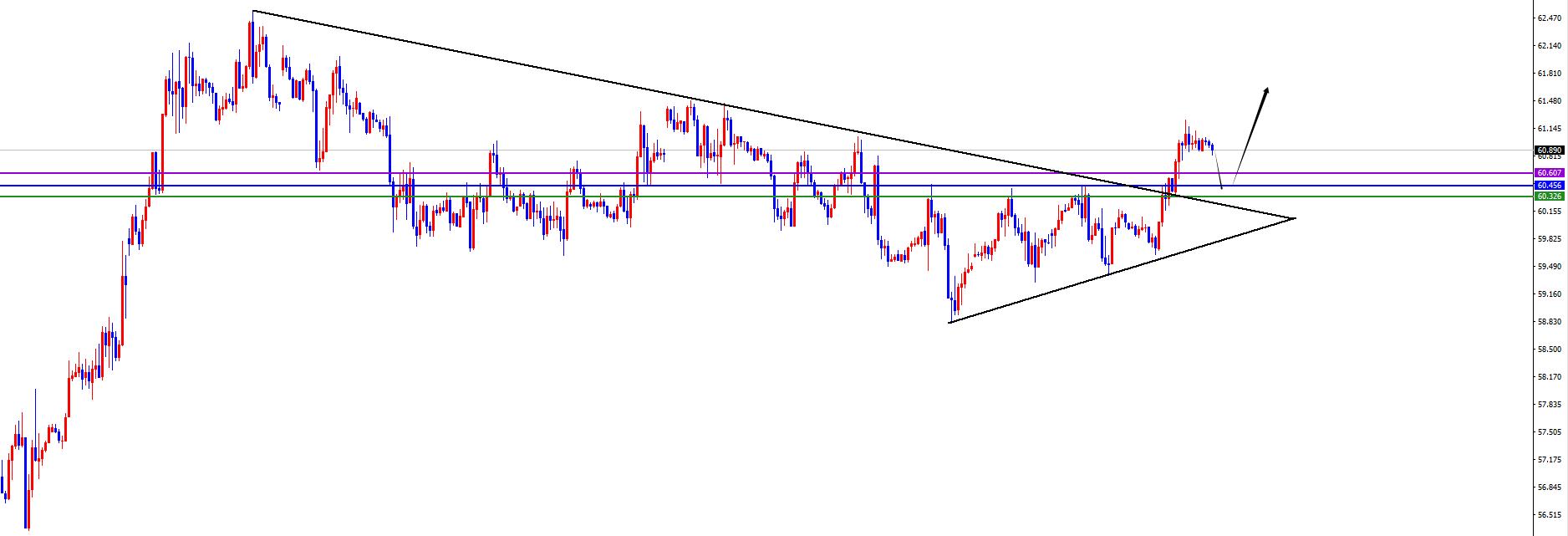 Le prix est dans la fourchette 60,40-60,50, faites attention à la suite du suivi