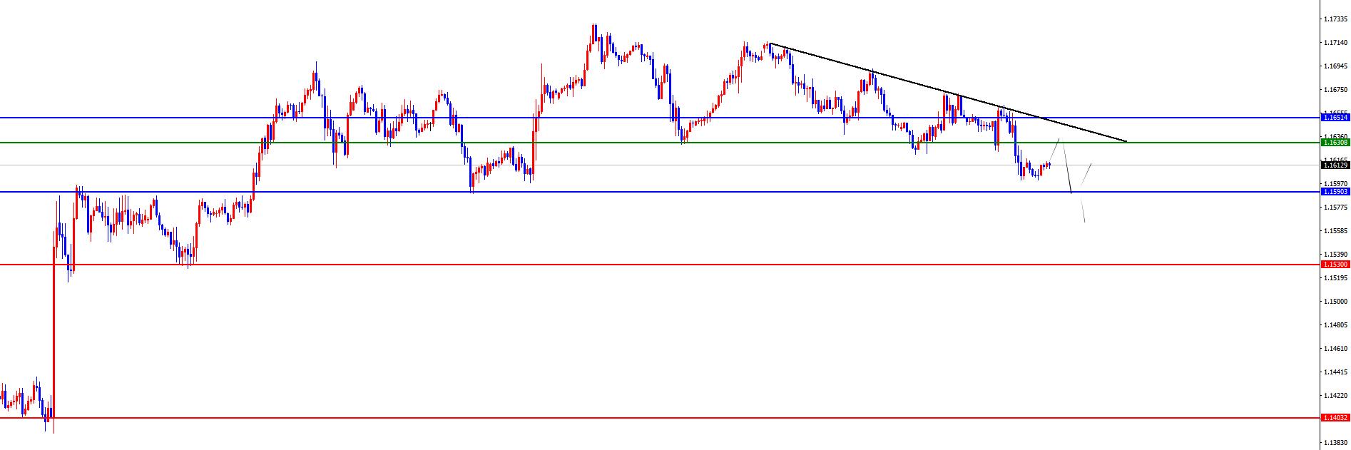 Europa e Stati Uniti hanno un breve intervallo di 1,1635-45, la difesa è 40 punti, il bersaglio è 1,1590 e poi si rompe e guardano a 1.1530