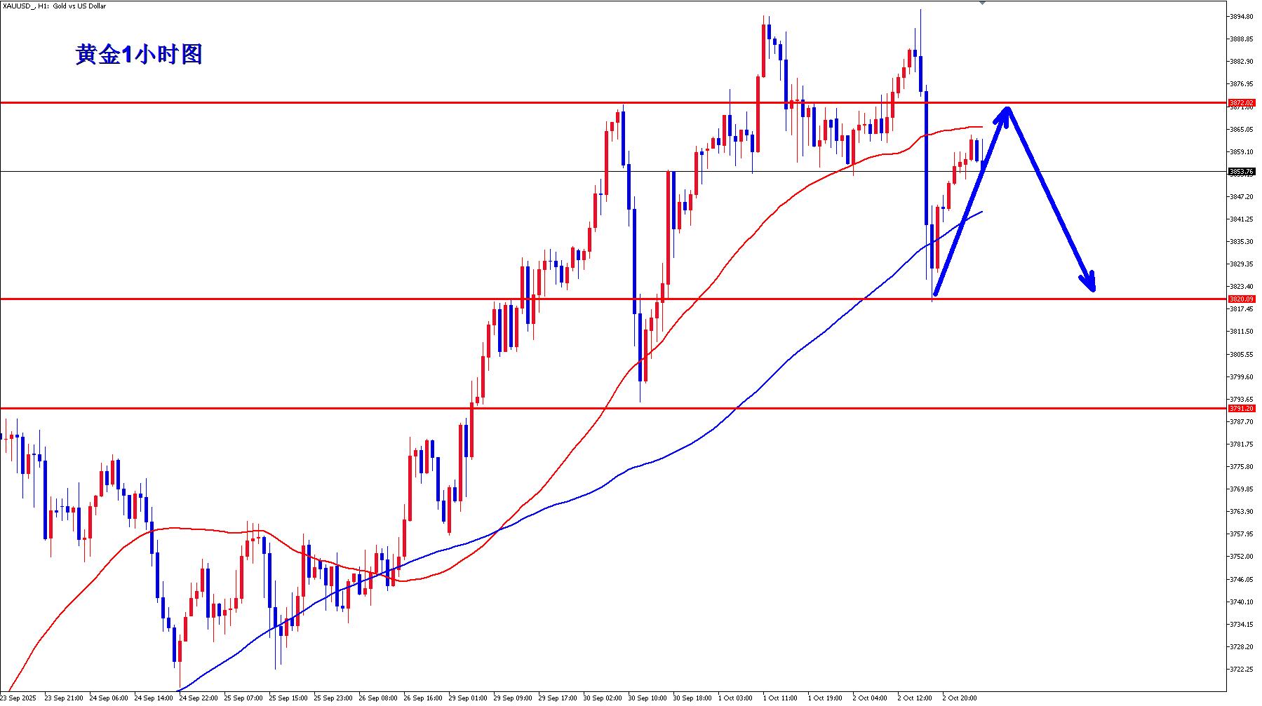 昨天早盘我们就说黄金短期要注意调整,黄金震荡调整为主,上方3890空,下方3820可以多,黄金昨天的行情跟我们昨天早盘的分析如出一辙。黄金早盘美盘最终反弹到3890上方冲高回落,黄金直接3890空,最终黄金大跌,如期触及3820附近一线。随着美国政府的停摆,一系列重要数据可能延迟公布,具体还得看进一步的动态。
