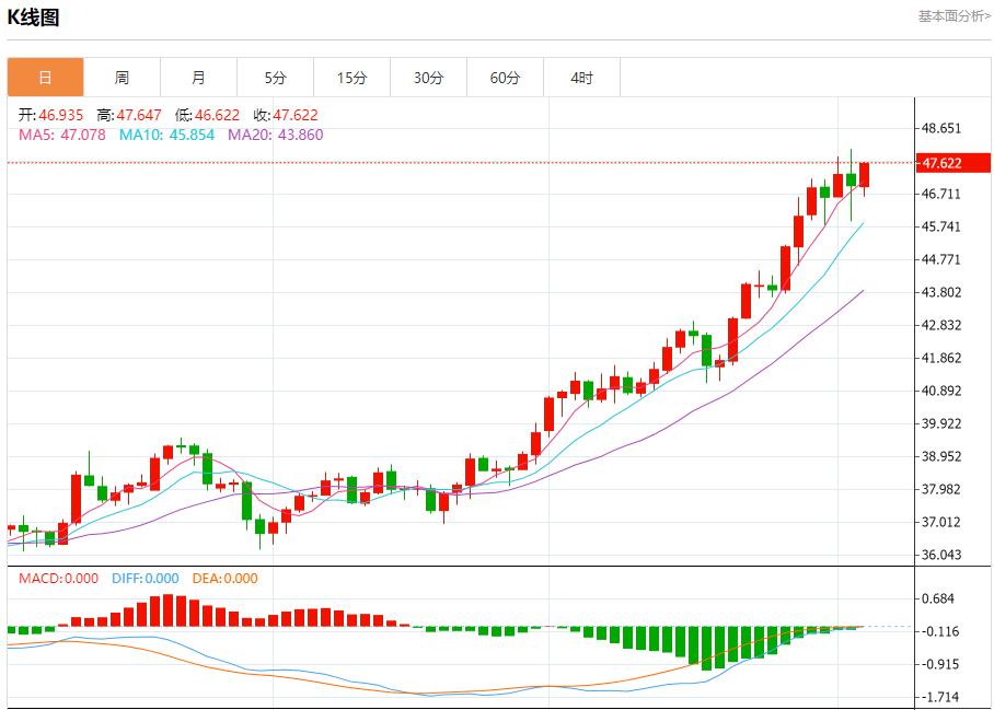 现货白银:截止北京时间20:23,现货白银上涨,现报47.625,涨幅1.40%。纽市盘前,(白银)价格在最后一个交易日上涨,以攻击47.50美元的阻力,受其在EMA50上方的持续交易支撑,在短期基础上的主要看涨趋势和沿该轨道的支撑趋势线交易的主导下,除了相对强度指标上出现积极信号之外。