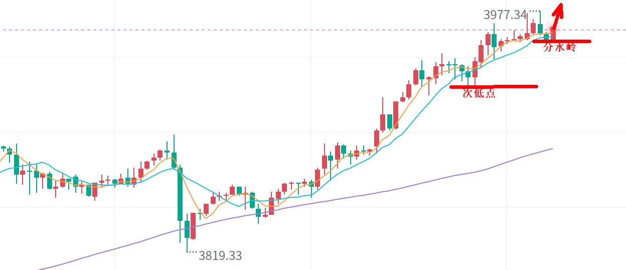 2,探底回升,走了3955的反抽,意味着分水岭3955.