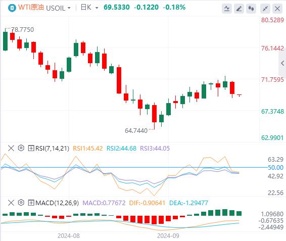 周四亚盘,原油交投于69.53附近。短期内,原油价格可能面临下行压力,因市场面临技术阻力。本交易日将出炉美国初请失业金人数变动、美国8月耐用品订单月率初值、美国二季度GDP终值,投资者需要重点关注,此外,本交易日将迎来多位美联储官员讲话,投资者也需要予以关注,另外,需要留意地缘局势相关消息。
