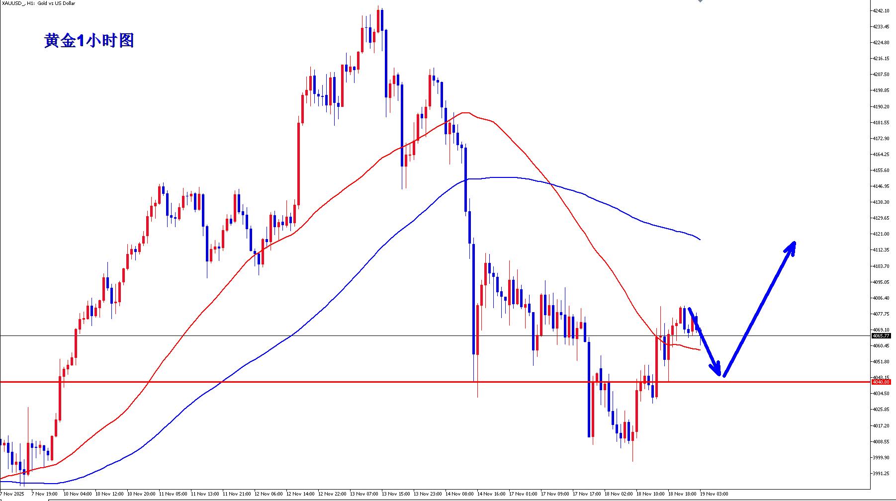黄金1小时探底回升之后,再次回踩企稳上涨,黄金短线可能还有上涨动能,不过并不是说黄金已经反转,大概率开始走震荡,上方4110上方依然是关键的强阻力区域,黄金短线关注昨晚美盘回踩4040附近的支撑,逢低可以先做多看一波延续上涨。