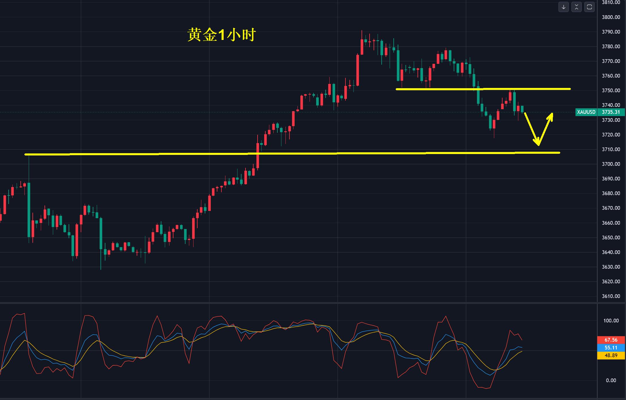 Então, há duas posições que precisam receber atenção. A pressão é 3750 e o suporte é 3710. Se você quebrar qualquer direção dentro desse intervalo, continuará. A ascensão é de quase 400 dólares americanos. As flutuações de curto prazo são normais. Você deve aceitar essa correção em fases.