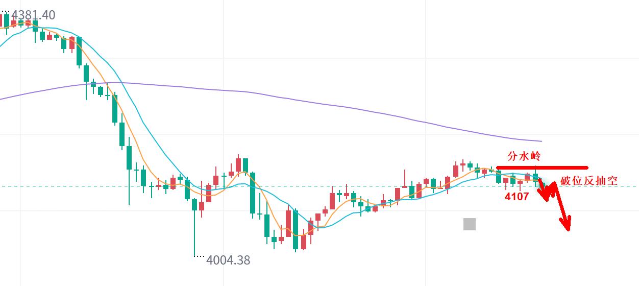3. Há um detalhe aqui. Quando sobe pela manhã, a posição de retração é 50% da correção da subida da madrugada do dia anterior. Portanto, depois de romper à tarde e retroceder um pouco, este se torna um ponto de referência de preço, a linha ascendente de 4100.