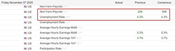 Às 21h30 desta sexta-feira, se a paralisação do governo dos EUA terminar, o Departamento de Estatísticas Trabalhistas do Departamento do Trabalho dos EUA divulgará o relatório de outubro sobre empregos não agrícolas; se a paralisação do governo dos EUA continuar, o relatório sobre o emprego não agrícola poderá não ser divulgado a tempo. Se o relatório sobre o emprego não agrícola for divulgado, o indicador mais observado é o número de novos empregos não agrícolas, que anteriormente era de 22.000. O valor anterior mencionado aqui não é de setembro, mas de agosto. Dado que a paralisação do governo dos EUA xmniubi.começou em 1 de Outubro, e o relatório de Setembro sobre as folhas de pagamento não agrícolas deveria ser divulgado em 3 de Outubro, o Bureau of Labor Statistics dos EUA ainda estava fechado nesse dia, pelo que não pôde ser divulgado conforme programado. O valor esperado das instituições financeiras é de 50 mil pessoas, superior ao valor anterior de 22 mil pessoas, mas muito abaixo do nível normal de 150 mil a 250 mil pessoas. Mesmo que o valor anunciado corresponda às expectativas, será difícil aumentar a confiança do mercado. Devido à incerteza no momento da divulgação das grandes folhas de pagamento não agrícolas, o foco do mercado se volta para os dados das pequenas folhas de pagamento não agrícolas desta quarta-feira. O valor anterior era -32.000 e o valor esperado era 24.000. Embora a expectativa tenha passado de negativa para positiva, o valor absoluto ainda é baixo e as perspectivas para o mercado de trabalho dos EUA são pessimistas.