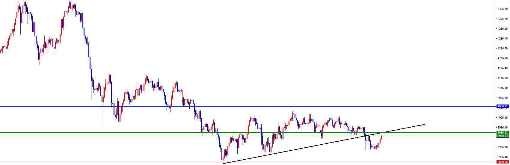 O principal divisor de águas é 3970-3980. Se o preço caiu abaixo de ontem, está atualmente sob pressão de curto prazo.