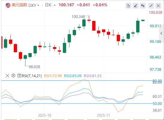 20 Kasım Perşembe günü Pekin saatine göre erken Asya ticaretinde ABD doları endeksi 100,16 civarında seyrediyordu. Çarşamba günü, riskten kaçınma ve Fed'in Aralık ayında beklemede kalabileceği beklentileriyle desteklenen ABD doları endeksi, art arda dördüncü işlem gününde güçlenerek 100 seviyesinin üzerinde yükseldi, son iki haftanın yeni zirvesine ulaştı ve sonunda %0,544 artışla 100,13'te kapandı; ABD tahvil getirileri genel olarak yükseldi; gösterge 10 yıllık ABD tahvil getirisi nihayet %4,142'de kapandı ve Fed'in politika faiz oranına duyarlı 2 yıllık ABD tahvil getirisi %3,602'de kapandı. Spot altın bir zamanlar ons başına 4.130 ABD dolarının üzerine çıktı, ancak gün içi kazançlar güçlü ABD dolarının kısıtlamaları altında keskin bir şekilde daraldı ve sonunda %0,26 artışla ons başına 4.078,22 ABD dolarında kapandı; spot gümüş nihayet %1,28 artışla ons başına 51,35 ABD dolarından kapandı. ABD'nin Rusya ile Ukrayna arasındaki barış görüşmelerini yeniden teşvik ettiği haberlerinden etkilenen uluslararası ham petrol, oturum sırasında düşüş yaşadı. WTI ham petrolü 60$ seviyesinin altına düştü ve sonunda %1,96 düşüşle 59,4$/varil seviyesinde kapandı; Brent ham petrolü nihayet %1,89 kayıpla 63,26$/varil seviyesinden kapandı.