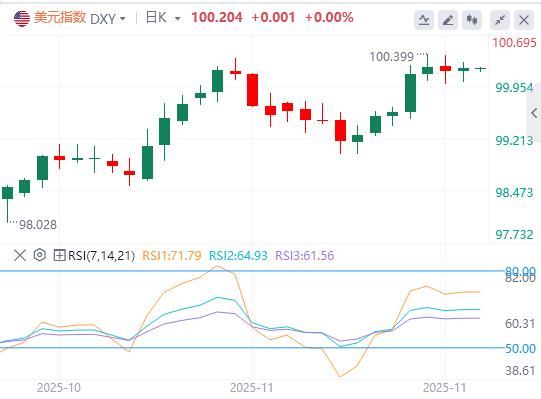 25 Kasım Salı günü Pekin saatine göre erken Asya ticaretinde ABD doları endeksi 100,20 civarında seyrediyordu. Pazartesi günü ABD doları endeksi yüksek seviyelerde dalgalanarak 100 seviyesinin üzerinde dengelendi ve sonunda %0,025 artışla 100,2'de kapandı; ABD tahvil getirileri genel olarak düştü; gösterge 10 yıllık ABD tahvil getirisi nihayet %4,031'de kapandı ve Federal Reserve'ün politika faiz oranına duyarlı 2 yıllık ABD tahvil getirisi %3,51'de kapandı. Piyasanın Fed'in önümüzdeki ay faiz oranlarını düşüreceğine dair artan beklentileriyle desteklenen spot altın keskin bir yükseliş göstererek günün en düşük seviyesinden neredeyse 100 dolar yükseldi ve sonunda %1,69 artışla ons başına 4.134,79 dolardan kapandı; Spot gümüş nihayet %2,64 yükselişle ons başına 51,36 dolardan kapandı. Rusya ile Ukrayna arasında varılan barış anlaşmasına ilişkin önemli konularda henüz ilerleme kaydedilememesi nedeniyle uluslararası ham petrol üç günlük kayıp serisine son verdi. WTI ham petrolü 59 ABD Doları seviyesine yaklaştı ve sonunda %1,67 artışla 58,89 ABD Doları/varil seviyesinde kapandı; Brent ham petrolü nihayet %1,39 yükselişle 62,79 ABD Doları/varil seviyesinden kapandı.