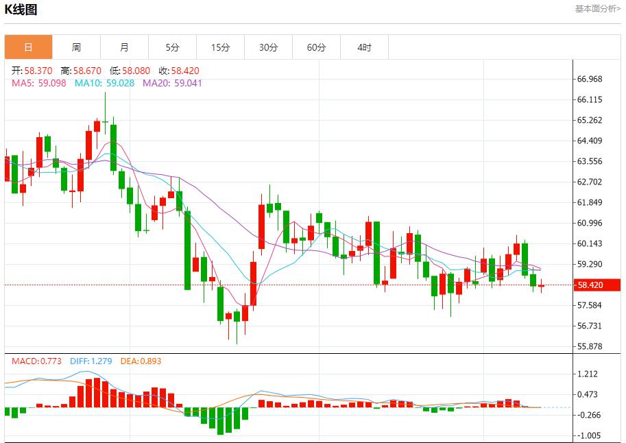 Ham petrol piyasası: Pekin saatiyle 21:20 itibarıyla ABD petrolü %0,24 artışla 58,380 seviyesinde işlem görüyor. New York ön piyasasında (ham petrol) fiyatları, aşırı satış seviyelerine ulaştıktan sonra son seansta görülen seviyeler civarında işlem görüyordu; temel desteğin 58,20 $ seviyesindeki istikrarı nedeniyle yaklaşan yükseliş momentumu ile göreceli güç göstergesinden gelen olumsuz sinyaller ve yükselen kama modelinin temsil ettiği kısa vadeli olumsuz teknik modelden etkilenen EMA50'nin altında işlem görmesi nedeniyle devam eden olumsuz baskı arasında dalgalanıyordu.