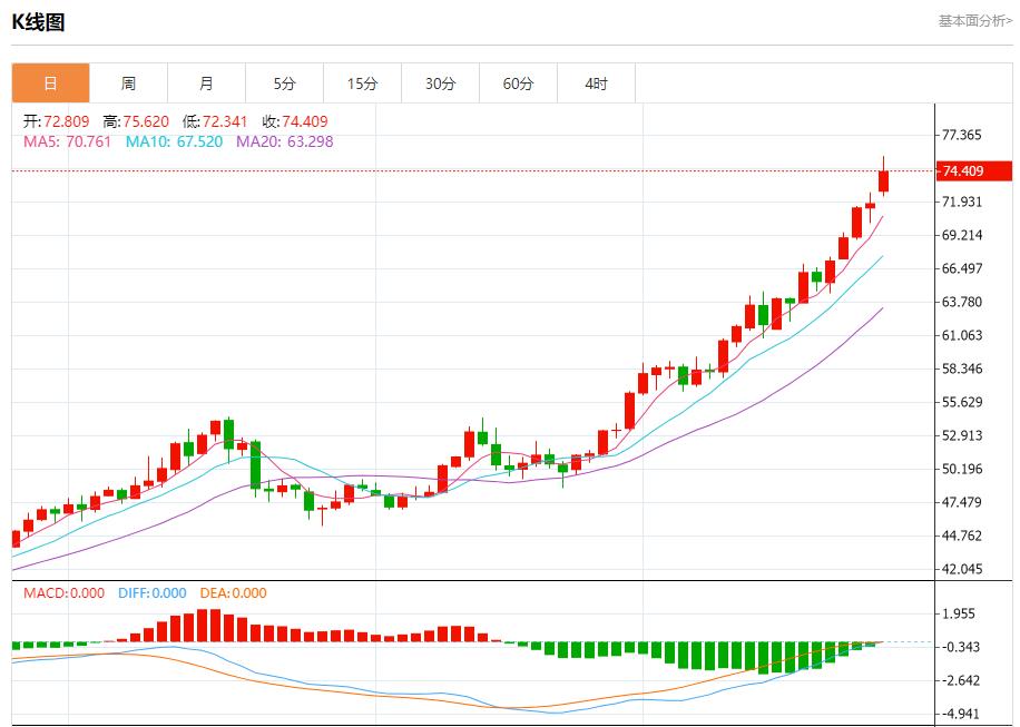 Spot gümüş: Pekin saati ile 21:20 itibarıyla spot gümüş %3,74 artışla 74,483 seviyesinde işlem görüyor. New York City açılışından önce günlük seviyedeki yükseliş trendi bozulmamıştı, 5 günlük ve 10 günlük hareketli ortalamalar yükseliş düzenlemesi içindeydi ve fiyat 72,00-75,60 aralığında oynuyordu, bu da trendin devamı için orta aşama konsolidasyonuydu ve bir zayıflama işareti değildi.