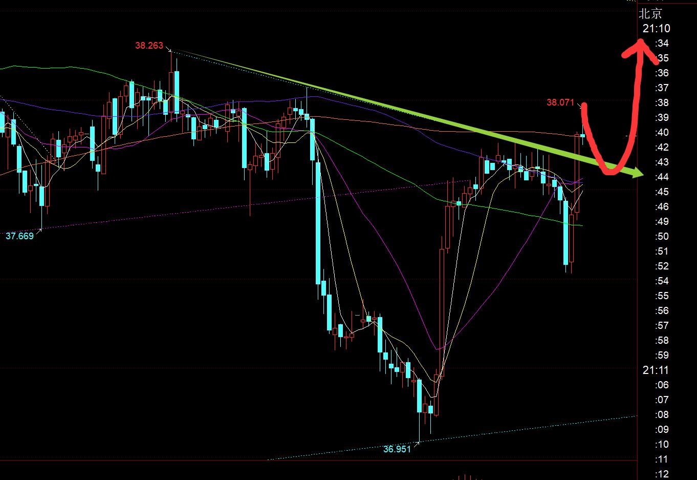 白銀方面:昨日也是探底收不錯的反陽,重新回到日線原先的上行通道之內,那麼今日回踩確認下軌支撐點就是37.55一線,這也是今日早間給出的看漲位,同時靠近昨日漲幅50分割位置;歐盤震盪下滑,剛好觸及37.55,順利一波拉升走高,突破亞盤高點,那麼今晚還有二次延續,關注37.9一線,回踩確認趨勢線穩定,則繼續看漲,上方阻力目標先關注38.4;