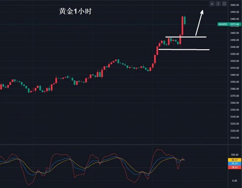 今天,早間看周評在3440-38美元入場了多,有人錯過沒有趕上的那就等回踩3460-55美元的範圍內,以此作為入場點,以3436美元作為多空分界點,也就是說3436美元之上回調繼續找位置多,破此位置再另作打算。上方目標關注3485-3495-3500美元。